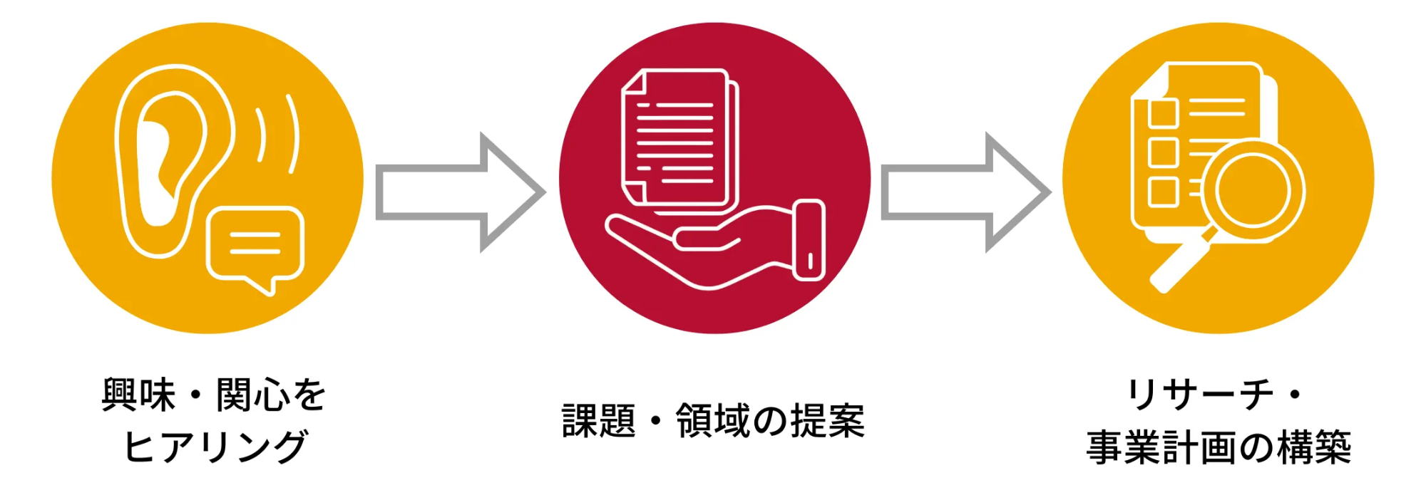 挑戦するべき課題の提案、初期リサーチのサポート、定期的な壁打ちを提供します。