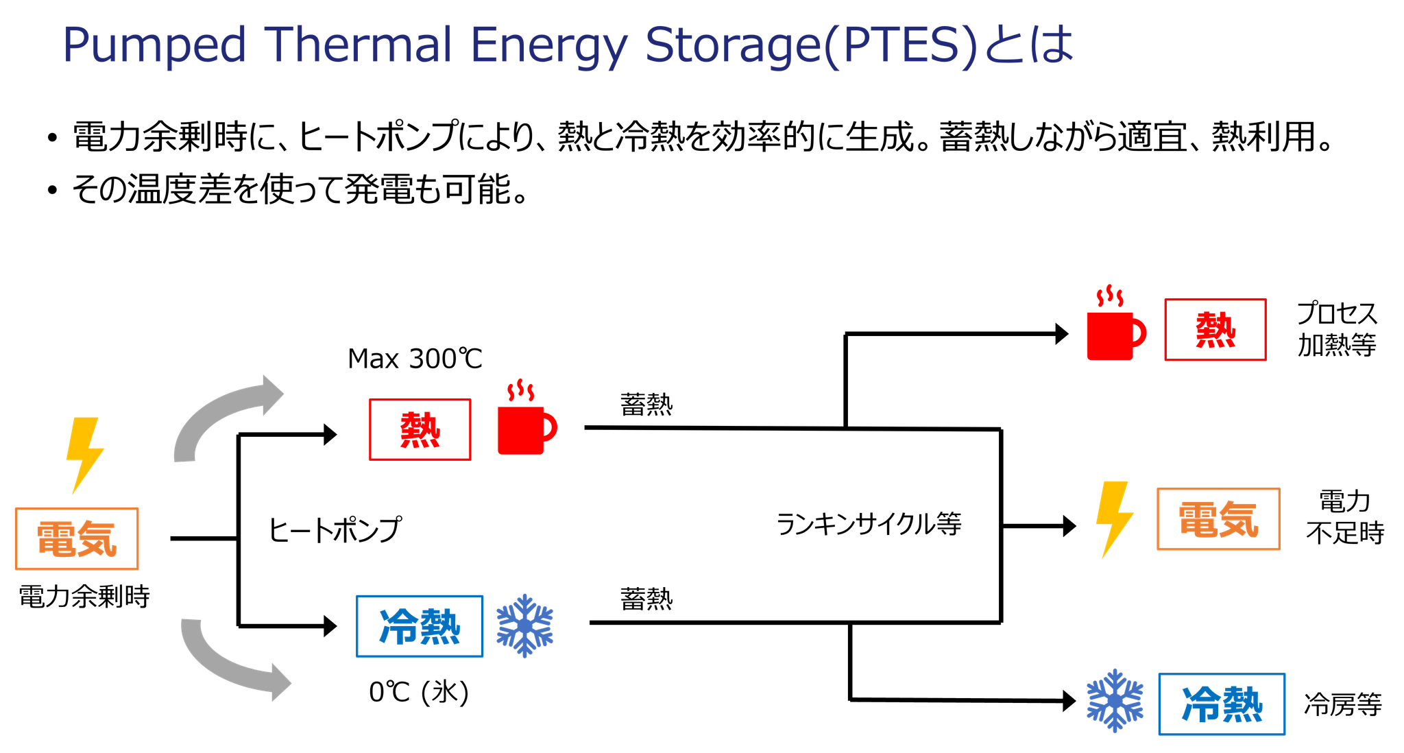 太陽光発電や風力発電などのポテンシャルの大きい再生可能エネルギー技術は、変動性があり、特に太陽光発電については約 10 %のシェアであっても、既に頻繁に出力抑制が発生しております。 捨てられるゼロエミ電源のエネルギーをうまく活用することで、脱炭素を経済的な形でさらに一歩進める、そのためには、安価な蓄熱技術や、高温のヒートポンプ技術、さらには長期エネルギー貯蔵(LDES)技術が必要であり、弊社はまさにそれに取り組んでいます。